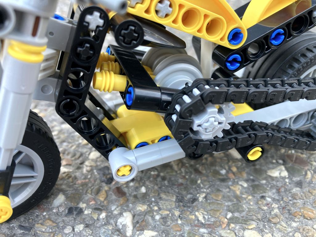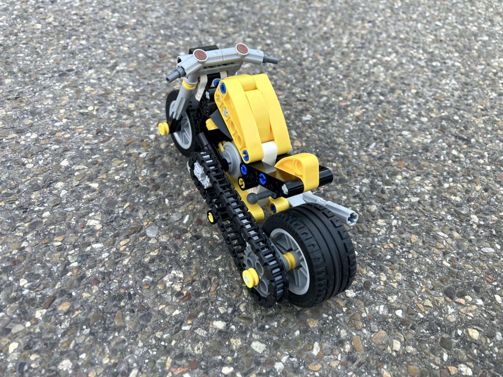 Eine nette, kleine Maschine für die jüngeren Baumeister mit 3-Kolbenmotor und Kettenantrieb. (Jetzt aber!). Die Umsetzung ist ebenso einfach wie die nicht sehr originelle Namensgebung, beides sinnigerweise abgestimmt auf die Alters-Zielgruppe (wobei die mit dem Begriff „Chopper“ wohl durchaus auch zurechtgekommen wäre).
