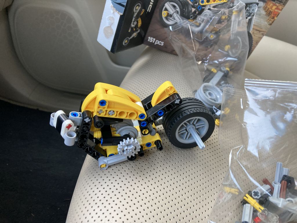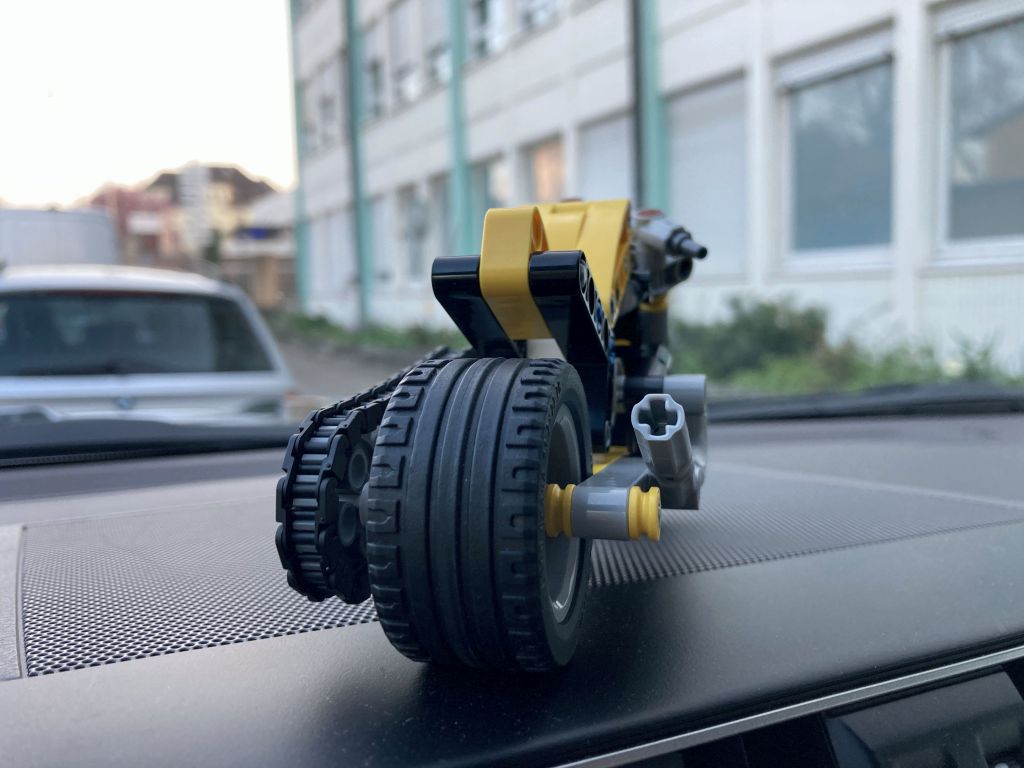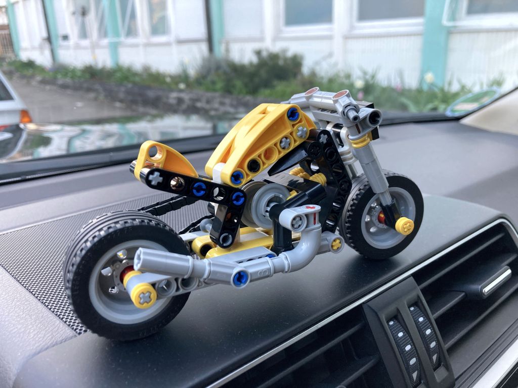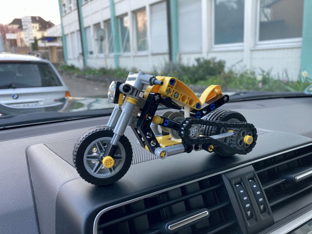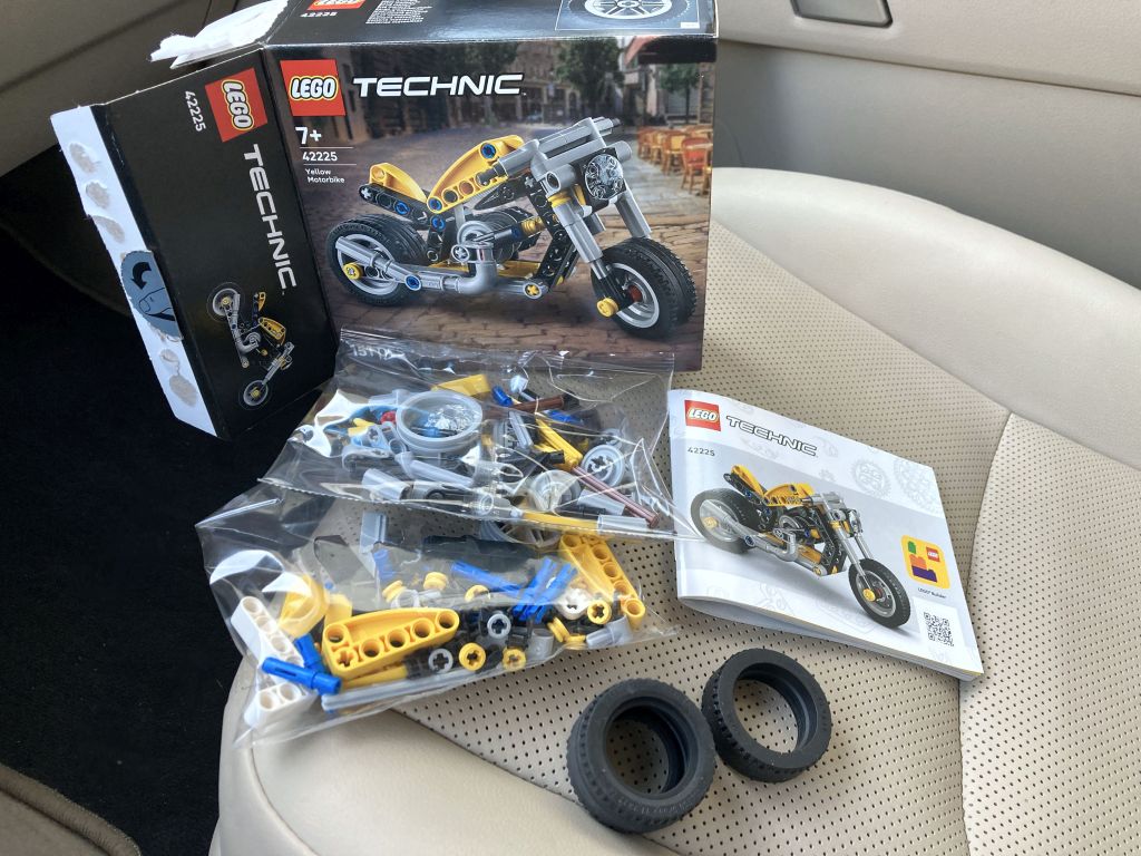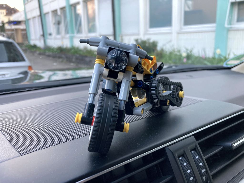 Am 1. März erschien das kleine LEGO Technic Set 42225 Gelbes Motorrad, ein Chopper aus 151 Teilen bei einer UVP von 9,99 Euro. Eine nette, kleine Maschine für die jüngeren Baumeister mit 3-Kolbenmotor und Kettenantrieb. (Hoppla, habe ich das Fazit schon vorweggenommen?) … und mein erstes mobiles „Zwischendurch“-Review im Auto, beim Warten auf den Nachwuchs.