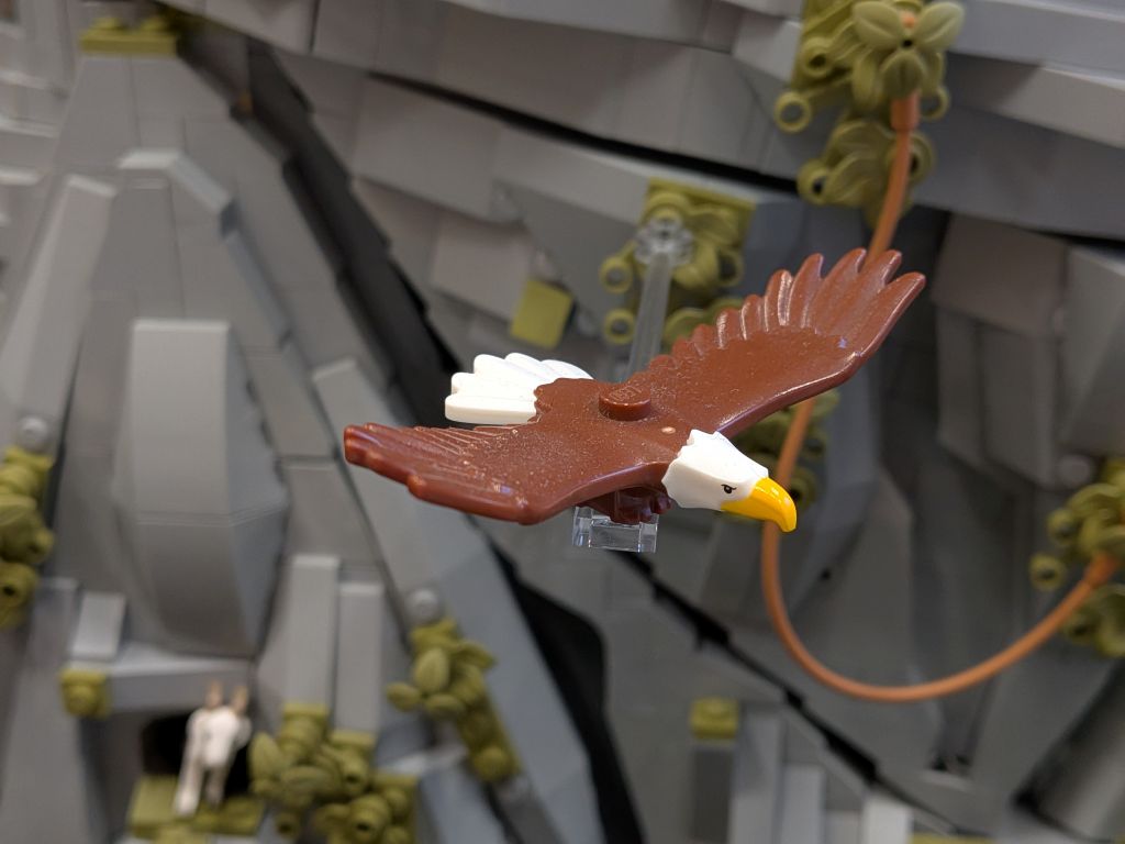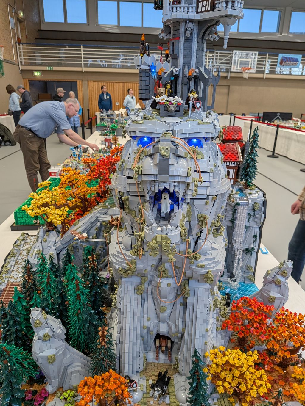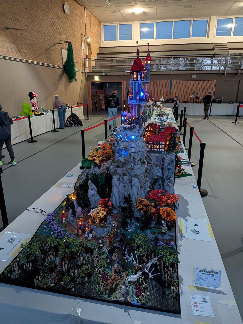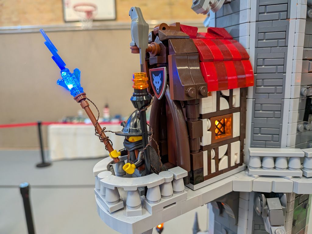 Alles hat begonnen mit der Darstellung des Wolfkopfes, der die Formen des Tieres nachzeichnet, aber obendrein wie ein Berg anmuten soll: Ein Ansinnen, das perfekt umgesetzt wurde. Der Maßstab war geboren, und die weiteren detaillierten Inhalte wie etwa das kleine Mittelalterdorf und das Waldstück wurden erschaffen. Grandios zu sehen ist, wie viel hier bei diesem Modell in Bewegung ist 📺. Ein wenig anwachsen soll das Modell noch, doch mehr sei nicht drin, denn die Fläche in seinem PKW sei endlich. Einmal soll das Modell – das zudem um ein Modul eines Baufreundes ergänzt wird – noch gezeigt werden, und zwar auf der diesjährigen Bricking Bavaria. Somit steht fest: Ein großes Wolfsgeheul gibt es auch im Süden!