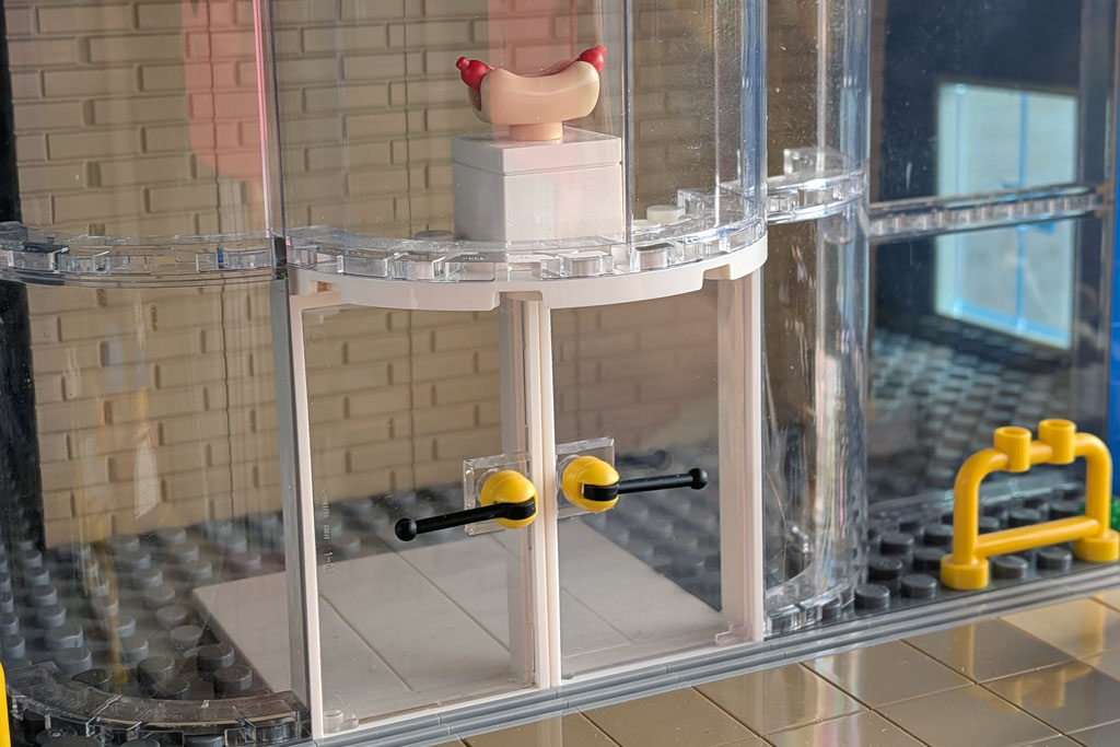 Mir ist bei solchen Gebäuden stets der Mix aus Realismus und Verspieltheit wichtig. Ich verwende ganz bewusst nicht zu viele Farben – das Farbschema „Blau-Gelb“ ist hier freilich thematisch vorgegeben. Im wahrsten Sinne des Wortes das Highlight ist das Småland: Per Rutsche geht es hoch und runter in die Glaskuppel mit Blick auf die Stadt, während die Eltern nach dem passenden Regal Ausschau halten. Und Hotdogs und Softeis dürfen für so manch Schleckermaul nicht fehlen!